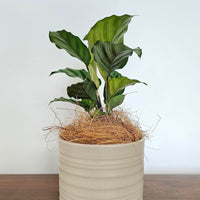 Calatheas grow best in tropical/subtropical conditions. Keep moist during the warmer months and ensure good drainage. Allow the plant to dry out slightly between waterings in the winter. Fertilise during the growing season with a slow-release indoor plant fertiliser.